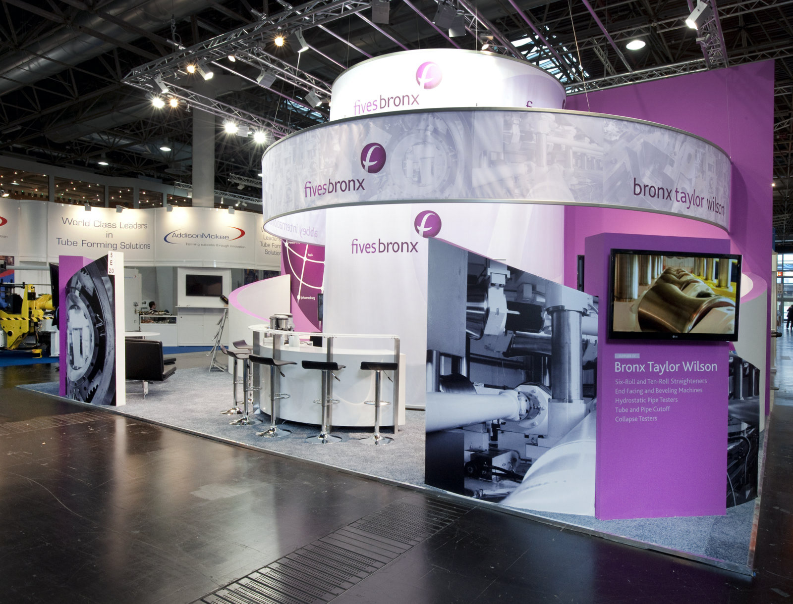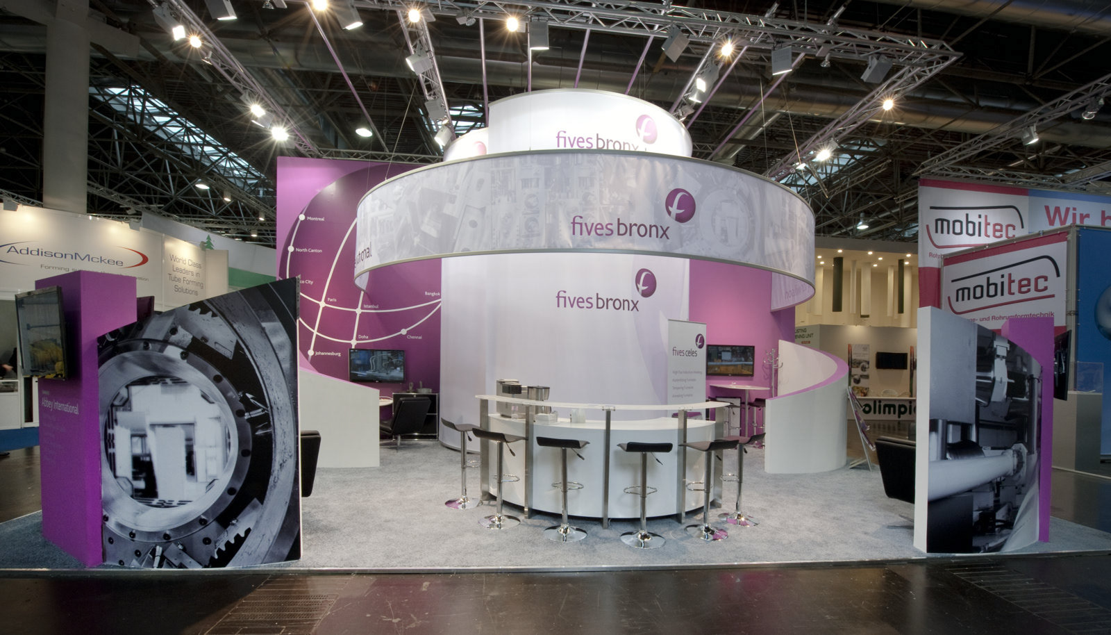 The newly acquired tube and pipe brands saw instant global attention by exhibiting in that year’s Tube Dusseldorf. Using the same technology used to visualize the machines, the booth was built from the ground up in 3d. The integration was a success and Fives Bronx was right at home.