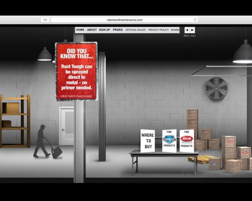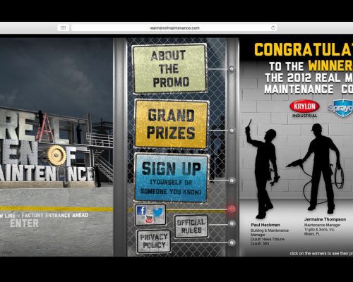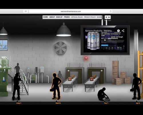 What better way to persuade a Manager than from the inside. The idea was to build a following among maintenance professionals who would then in turn recommended Sprayon products to their manager. We built a campaign entitled, “Real Men of Maintenance” where maintenance professionals were nominated by their peers to be eligible to win a $2,500 gift card to bass pro shops and a year’s worth of product for their facility. The peers could then vote for who the winner would be. The site featured a unique sideways scrolling factory where the nominees can be seen working.
