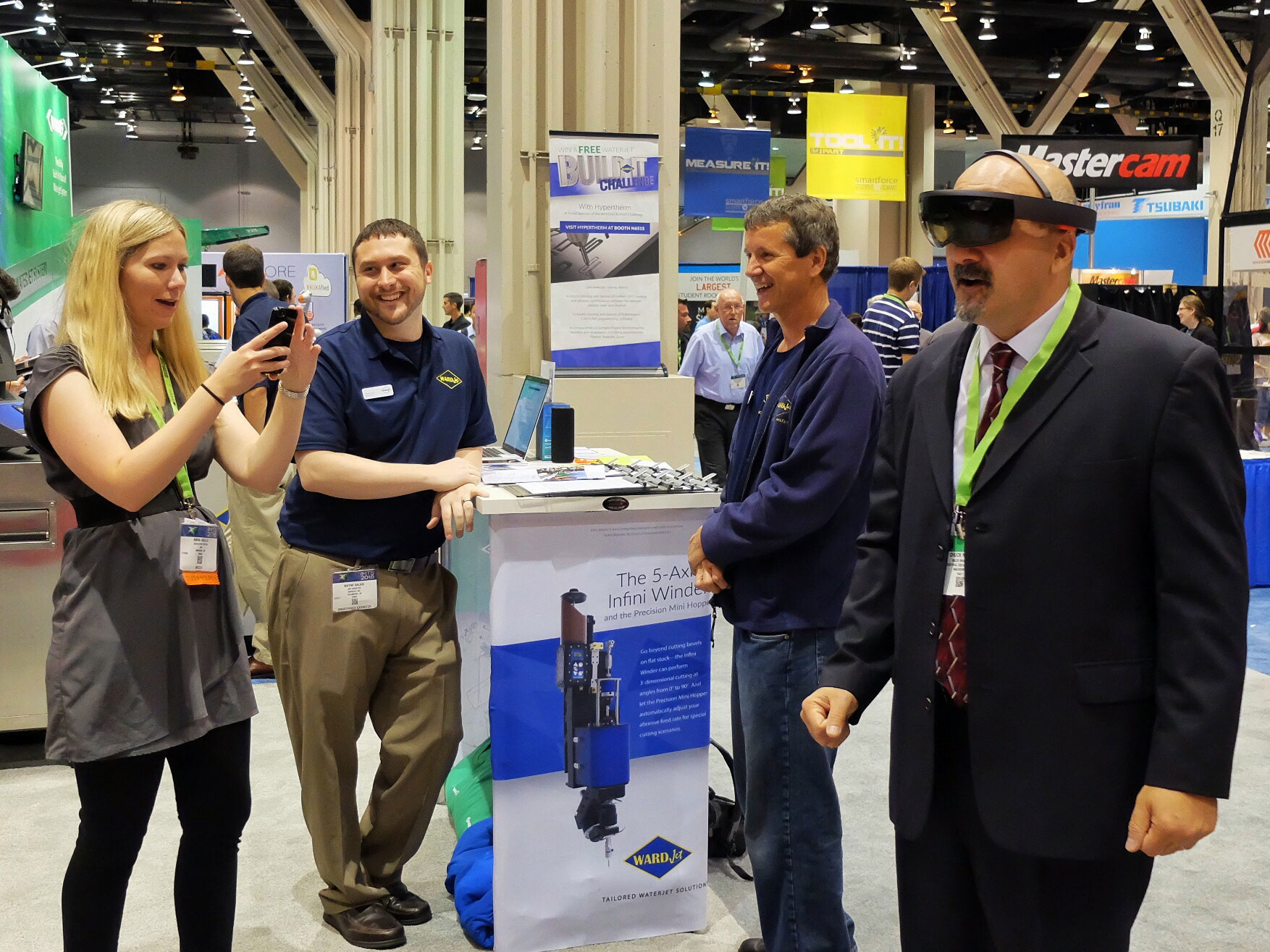To drive traffic to the booth, T-Shirts were given away and if an attendee was seen wearing one, they could win a Free Amazon Tap. WARDJet also utilized a Microsoft Hololens to show other waterjets in their product line through augmented reality.